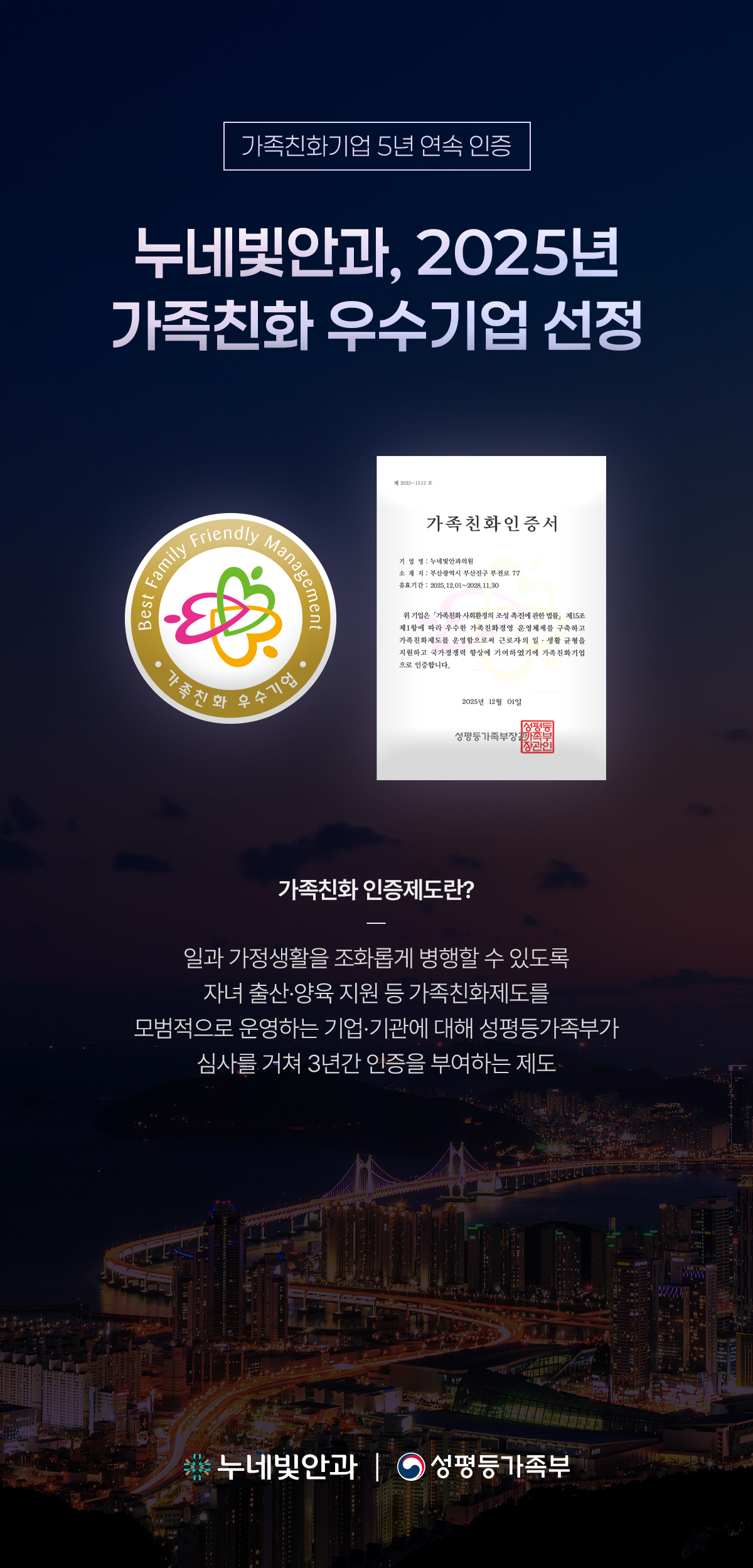 가족친화 우수기업 5년 연속 인증 누네빛안과