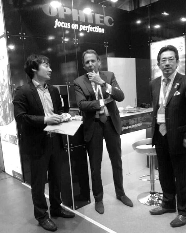 아울러 최근에 본원과 MOU를 체결했던 OPHTEC社 부스에 방문해 안내렌즈에 대한 정보를 교류하였습니다.