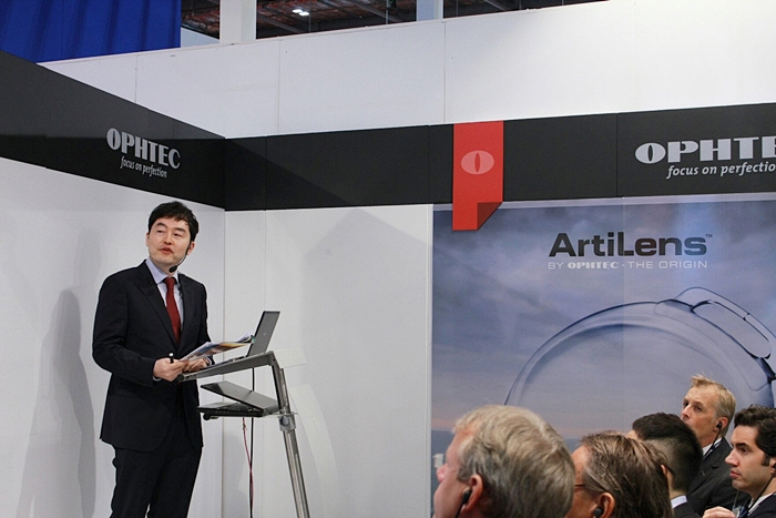 이날 박효순 원장은 학회에 모인 전 세계의 의료진들과 시력교정수술 관계자들을 대상으로 강의를 진행했습니다. ‘안구내에서 렌즈가 위치할 부분(전방)의 공간이 좁아 수술이 불가능한 환자들에게 좀 더 정밀한 전방 분석법을 통하여 수술이 가능할 수도 있다.’는 가설하에 정밀 전방 분석법과 그 평가법에 대하여 보고하였고, 실제 성공적으로 시술된 사례들과 그 사례의 안정성을 보고하였습니다. 지금까지는 전방의 중심 깊이를 수술 가능 여부의 기준으로 생각하고 시술하였지만 실제적으로 삽입된 렌즈가 안구에 영향을 미치는 주변부 전방을 좀 더 신중하게 분석함으로써 수술불가 판정을 받은 환자도 수술이 가능할 수 있는 방법을 제시하였으며 주변부와 중심부의 전방형태가 사람마다 다 다르기 때문에 중심전방 깊이로 수술 가능 여부를 결정하는 것에 대한 문제점을 지적하였습니다.