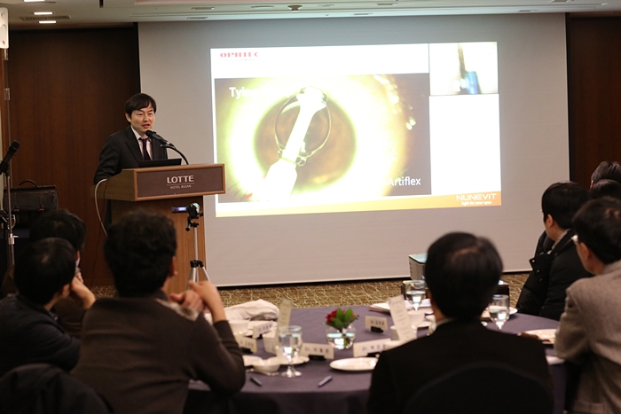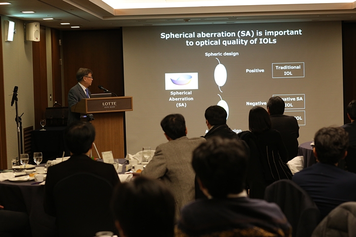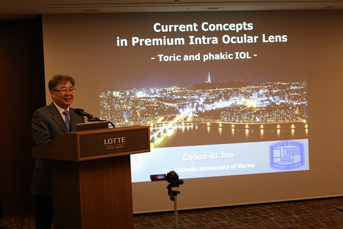또한, 국내 백내장 굴절 분야 최고 권위자인 서울성모병원 주천기 교수(가톨릭대 의과대학장)는 'Current Concepts in Premium Intra Ocular Lens'에 대한 주제로 초대발표 마지막 순서를 멋지게 장식했습니다.