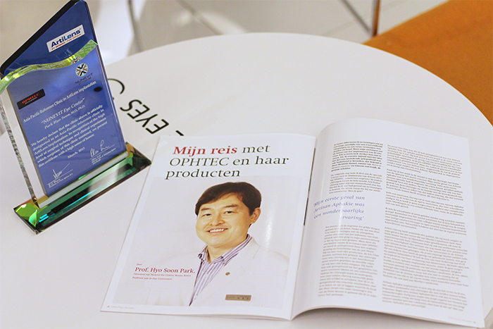 본원이 안내렌즈삽입술 분야의 세계적인 의료 기술력을 인정받아 네덜란드 옵텍(OPHTEC)사로부터 ArtiLens 아시아태평양 레퍼런스 클리닉으로 선정되었습니다.