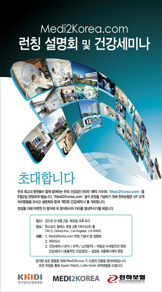 본원의 박효순 원장이 미국 캘리포니아 주 로스앤젤레스의 한 호텔에서 진행된 메디2코리아닷컴 출범식에 주요내빈으로 참석해 안과 건강강의를 진행했습니다.